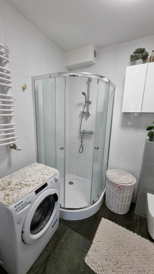 Mieszkanie w pełni wyposażone i wykończone na wysoki standard. Sprzedawane jest jako mieszkanie pod klucz, do wprowadzenia wraz z meblami i sprzętami. Poza TV, w cenie sprzedaży są też wszystkie sprzęty RTV i AGD. Większość z nich jeszcze na gwarancji. Łazienka i kuchnia również kompletnie wyposażone.