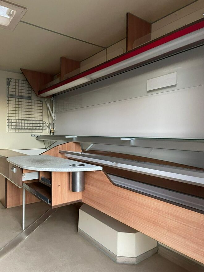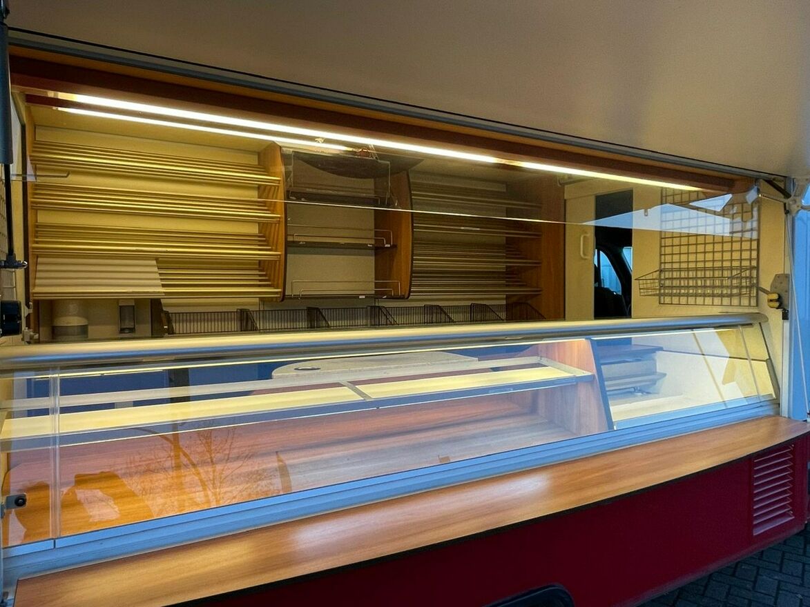 ,Witryna chłodnicza wystawowa,własne zasilanie 230V-12V , akumulatory żelowy + przetwornice,regały,przejście do szoferki,wiatrochron, uchwyt na papier,podłoga przeciwpoślizgowa, atrakcyjne oświetlenie oraz zabudowa, kącik socjalno-sanitarny-zlewozmywak dwu komorowy, woda ciepła i zimna,DMC 3500.Stan Bardzo Dobry,W ofercie zobacz inne pojazdy. Automilian.pl