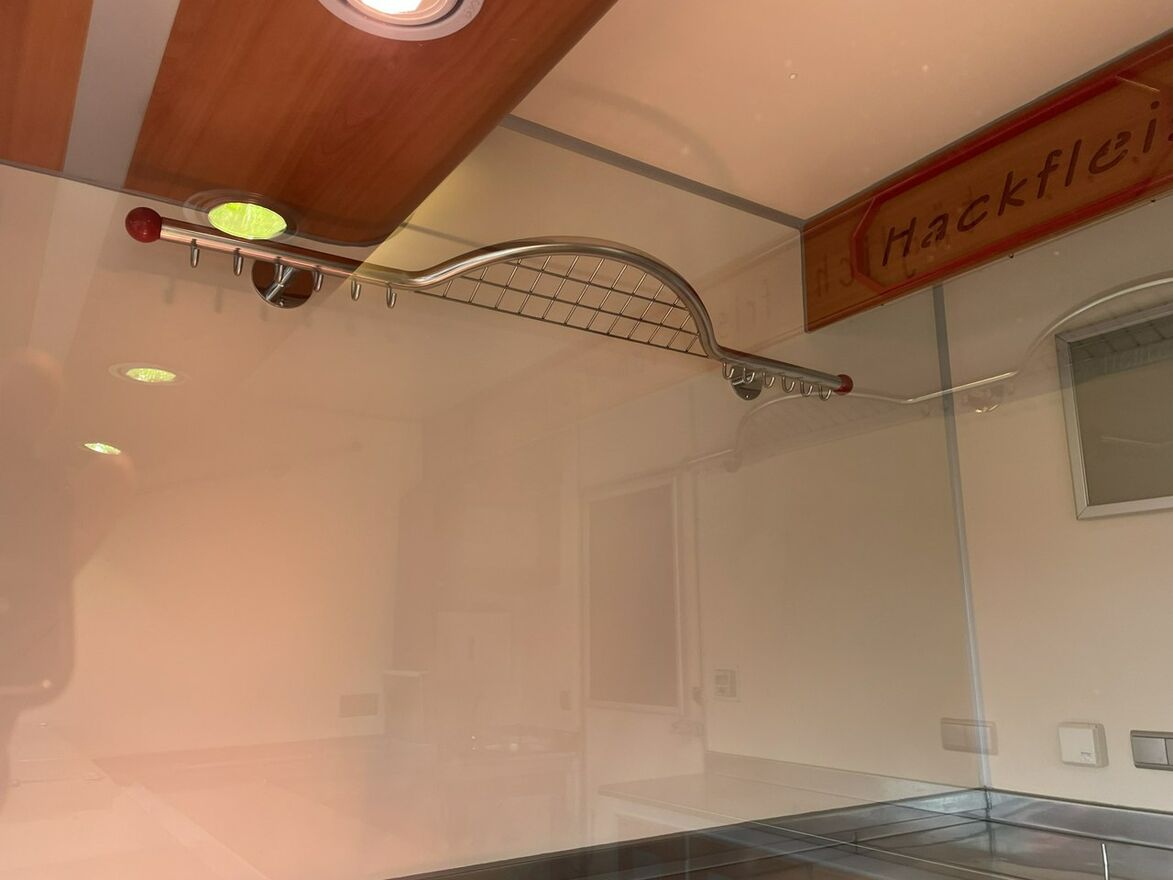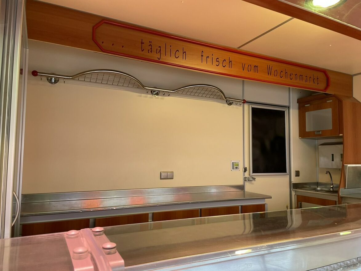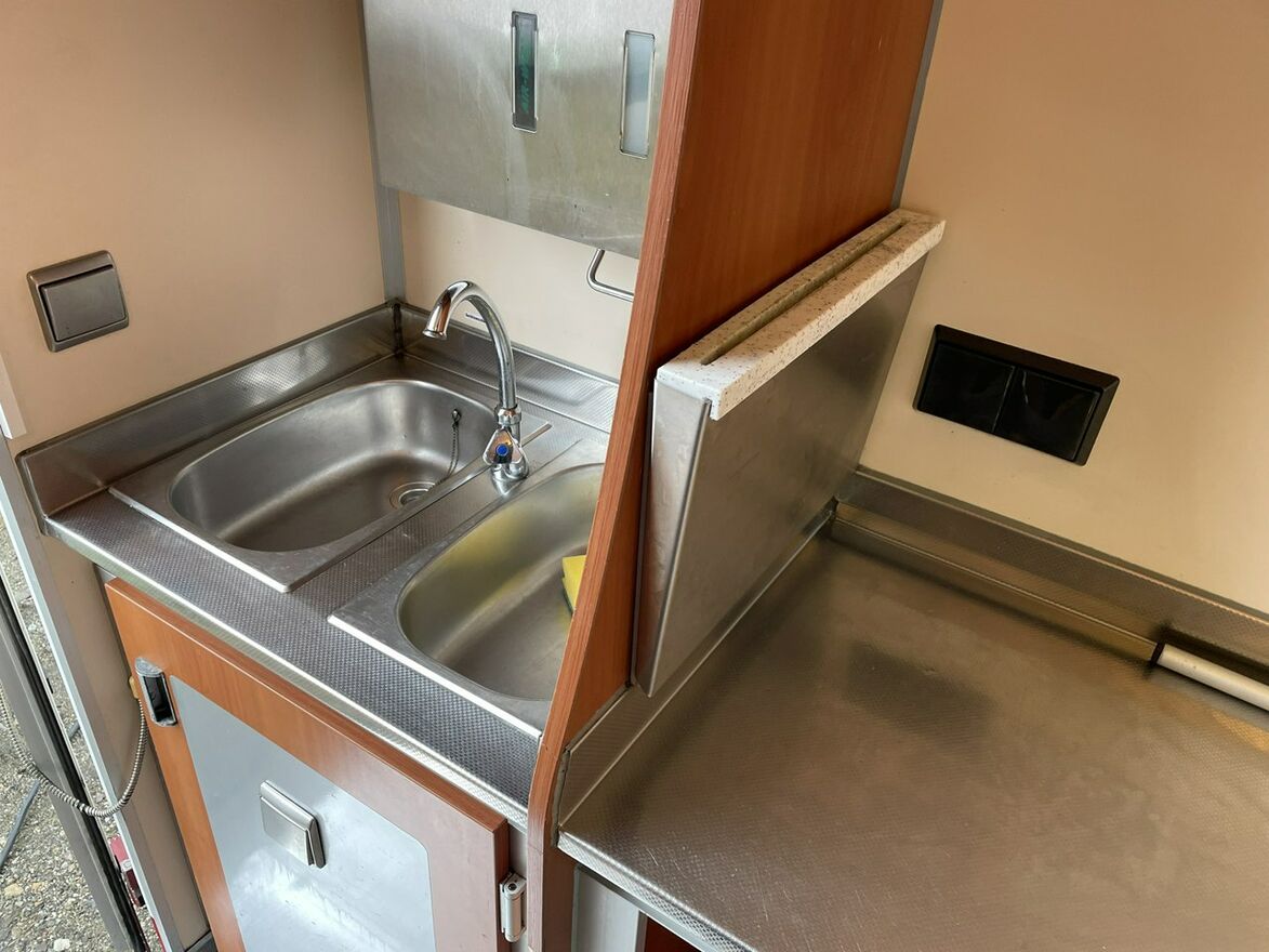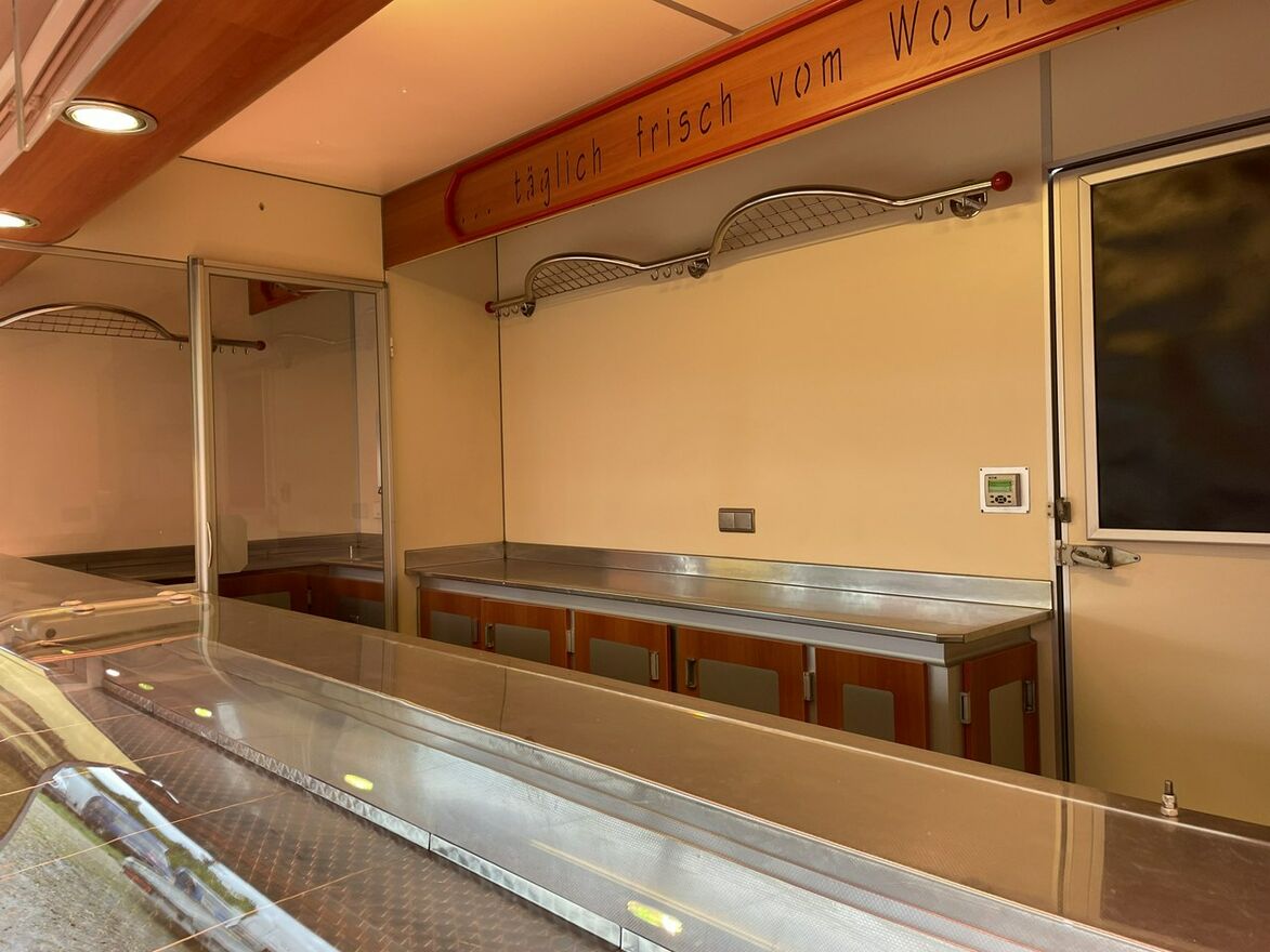 ,bok otwierany ,lada sprzedawcy panoramiczna,agregaty chłodnicze,pod ladą duże szuflady,regały,pułki,haki,pinek,drugie pomieszczenie na mięso,Klimatyzacja.dzwonek informacyjny,podłoga przeciwpoślizgowa,wiatrochron czołowy oraz boczny,kamera cofania,atrakcyjne oświetlenie zabudowy,kącik socjalno-sanitarny-zlewozmywak dwu komorowy,woda ciepła i zimna,W ofercie inne pojazdy,Stan Bardzo Dobry.
